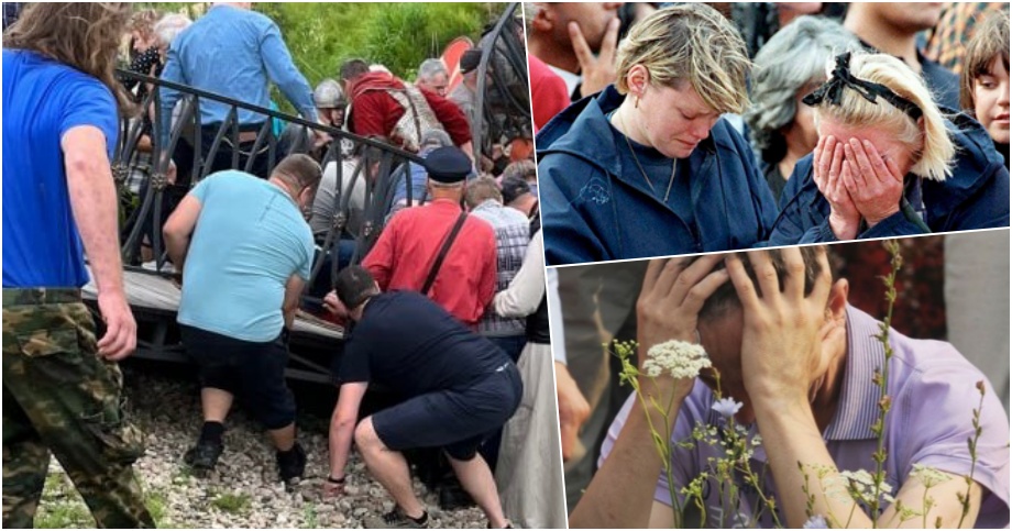 Инцидент произошел около 15:00 во время проведения фольклорного фестиваля «Ольгины берега». Деревянно-металлический мост над неглубоким оврагом на набережной реки Луга просто сложился пополам, когда на нем находились сотни людей.