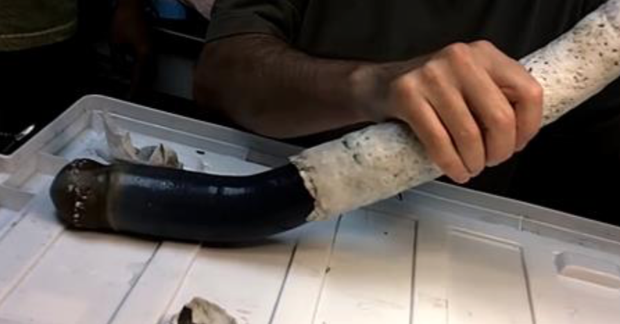 Местные ученые обратили внимание на эту информацию, обратились к коллегам из Университета штата Ютаи других научных учреждений мира, и отправились на место с экспедицией. Результат превзошел все ожидания: биологи обнаружили моллюска Kuphus polythalamia. Ранее он был известен по фрагментам, хранящимся в музеях; среди них попадались гигантские полые трубки (раковина), но анатомия животного оставалась загадкой.