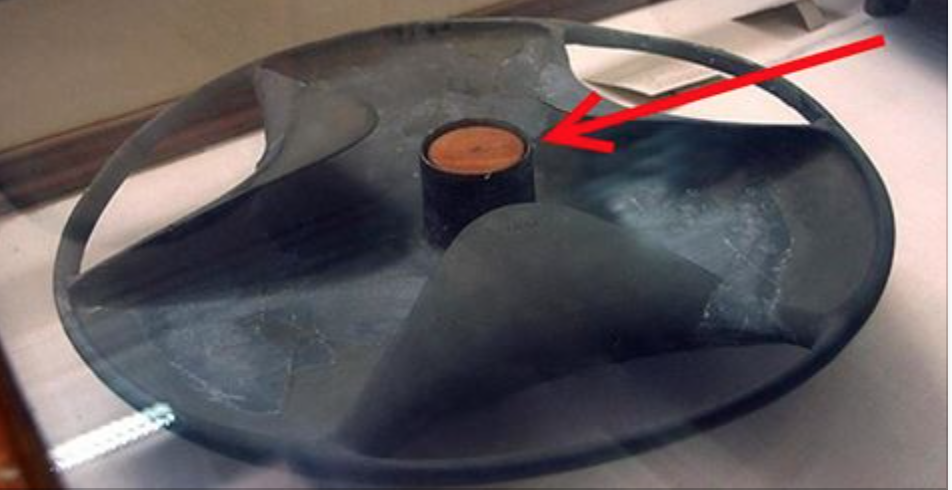 В 1936 году во время раскопок гробницы чиновника Сабу в египетском селении Саккара был найден странный артефакт — тонкостенный каменный диск диаметром 70 сантиметров с загнутыми в трех местах краями и втулкой в центре.