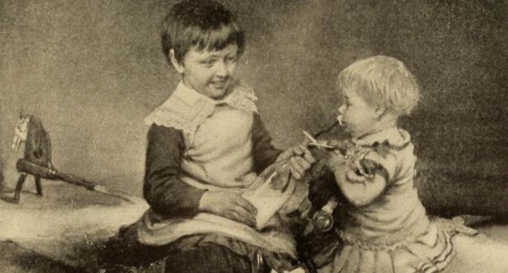 Это фото двух детей было опубликовано в 1887 году в одной из книг по домоводству. Ни родители, ни автор книги не догадывались, что один из малышей находится в смертельной опасности. Присмотритесь внимательнее, не замечаете ничего странного?
