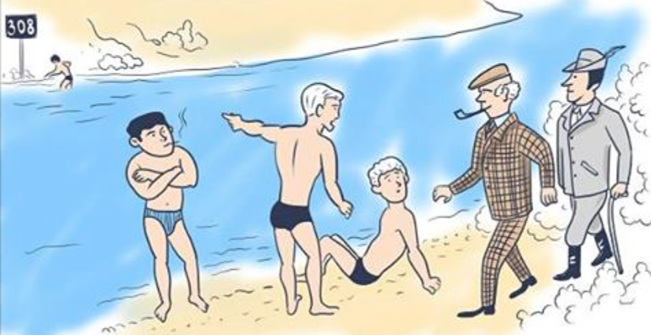 Увидев компанию купающихся, инспектор подошел к ним и спросил:
