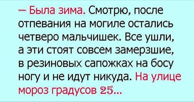 — Была зима. Смотрю, после отпевания на могиле остались четверо мальчишек. Все ушли, а эти стоят совсем замерзшие, в резиновых сапожках на босу ногу и не идут никуда. На улице мороз градусов 25. А самый маленький из них был еще крошечка. Я спрашиваю: «Что же вы не идете домой?», а они мне говорят: «Мы без мамы не пойдем. Нам идти теперь некуда». Отец-то от них ушел, а мамка вот умерла. «Ваша мама теперь на небесах,— говорю я им. — Пойдете ко мне жить?». Кивают. Ну, я и привез их к нам в монастырь.