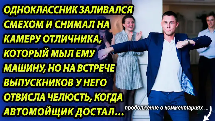 Однокласник реr0 тав над відмінником, який мив йому машину, але на зустрічі випускників спантеличив, побачивши… FA 2 года назад Одноклассник стебал и снимал на камеру отличника, который мыл ему машину, но на встрече выпускников остолбенел, увидев как мойщик достал…
