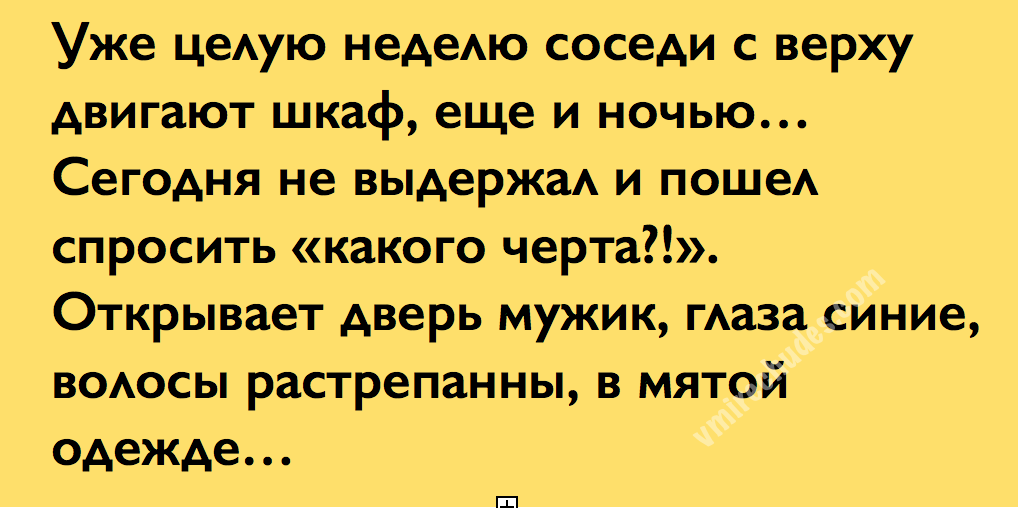 Спрашиваю «чего вы мебель двигаете всю ночь, достали, спать не даете»???