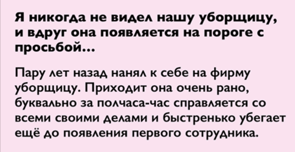 Как оказалось, эта шустрая дамочка за день заглядывает в 20 маленьких контор в районе. Суммарный доход — 200 тысяч рублей в месяц! При этом работает она принципиально до 17:00 — семья превыше всего!