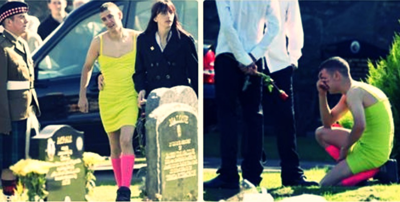 Когда рядовой Кевин Эллиот был убит в Афганистане, его лучший друг Барри Делани с трудом втиснулся в ярко-желтое обтягивающее платье, натянул пару розовых гольфов, налил себе рюмку водки и выпил ее в память о своем лучшем друге. Они заключили пари, и он выполнил свою часть сделки.