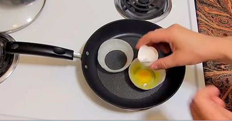 Через минуту разбейте яйца в круги и оставьте примерно на 3 минуты…