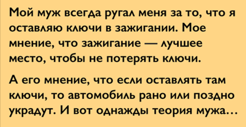 А его мнение, что если оставлять там ключи, то автомобиль рано или поздно украдут.
