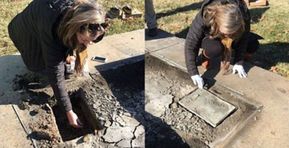Неизвестный военный захоронил капсулу с многочисленными памятными и ценными вещами под памятником у Университета Луисвилл в Кентукки.