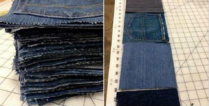 В этом проекте Кэти использовала 12 пар джинсов, которые она разрезала на 121 квадратов одинаковых размеров.