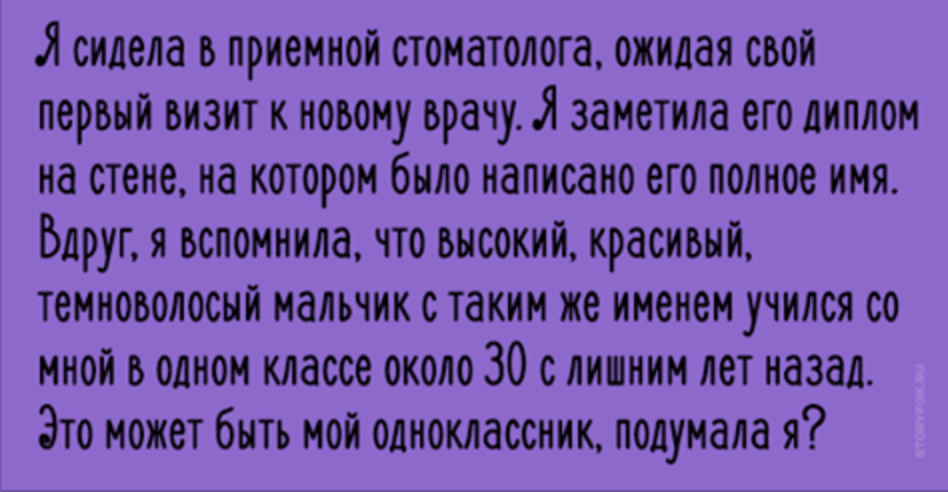 Я сидела в приемной стоматолога, ожидая свой первый визит к новому врачу. Я заметила его диплом на стене, на котором было написано его полное имя.