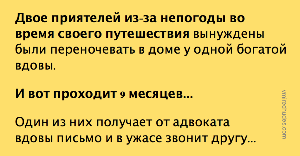 Двое приятелей из-за непогоды во время своего путешествия вынуждены были переночевать в доме у одной богатой вдовы.