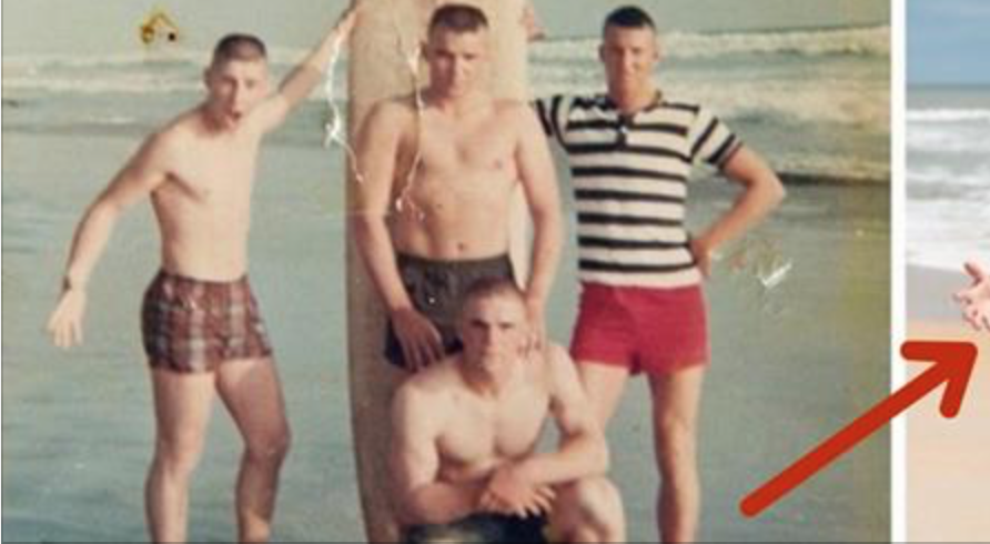 Ветераны прибыли на тот самый пляж, добыли доску для серфинга, стали в те же позы, что на фотографии, и попытались передать те же эмоции! «Это был один из лучших дней в моей жизни», — скажет Том. До самой ночи они сидели на том берегу и травили байки вперемешку с новыми историями.