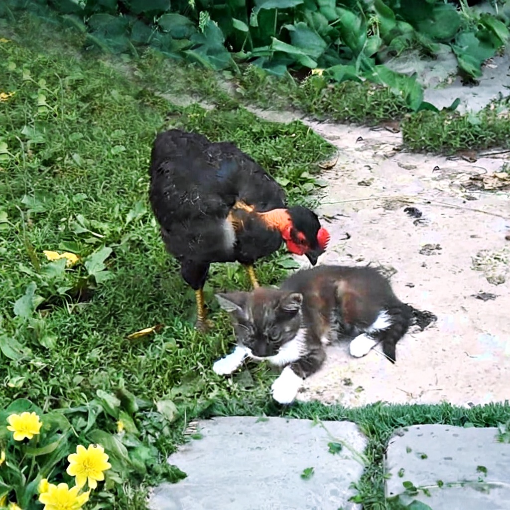 Когда к усатому приятелю из видео ниже подошла курица, хозяева животных не ждали...