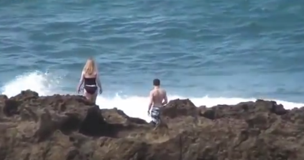 Главные герои сегодняшнего ролика, наверное, решили, что неплохо было бы взглянуть на волны со скал, торчащих у побережья Гавайев. Вот только в этот момент они приняли неправильное решение. Уважать силу стихии нужно всегда, иначе это может привести к тому, чем закончился этот ролик.