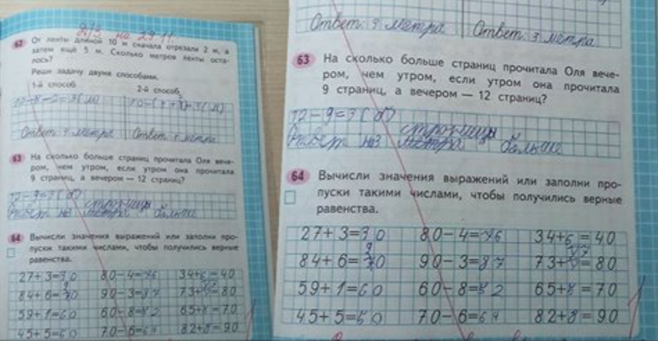 А по-вашему, если равенства верные, вычитание удалось, и даже первая задача решена двумя способами — можно ли так оценивать работу ребенка? Только за то, что он сделал ее не дома, «как все», а сразу после урока?