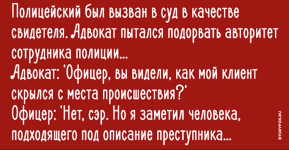 Полицейский был вызван в суд в качестве свидетеля. Адвокат пытался подорвать авторитет сотрудника полиции…