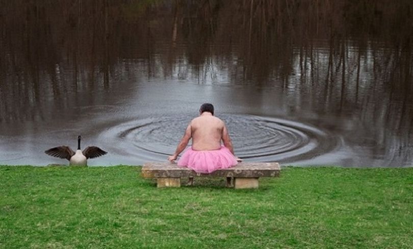 Эта история началась в 2003 году, когда у жены этого парня в розовой пачке обнаружили рак груди. Боб Кери не пал духом, наоборот, он придумал отличный способ приободрить жену. Боб хотел всячески помочь супруге: «Когда Линда пойдет на лечение, она захватит с собой фотографии на своем телефоне — и будет вместе с другими женщинами смотреть на них и смеяться».