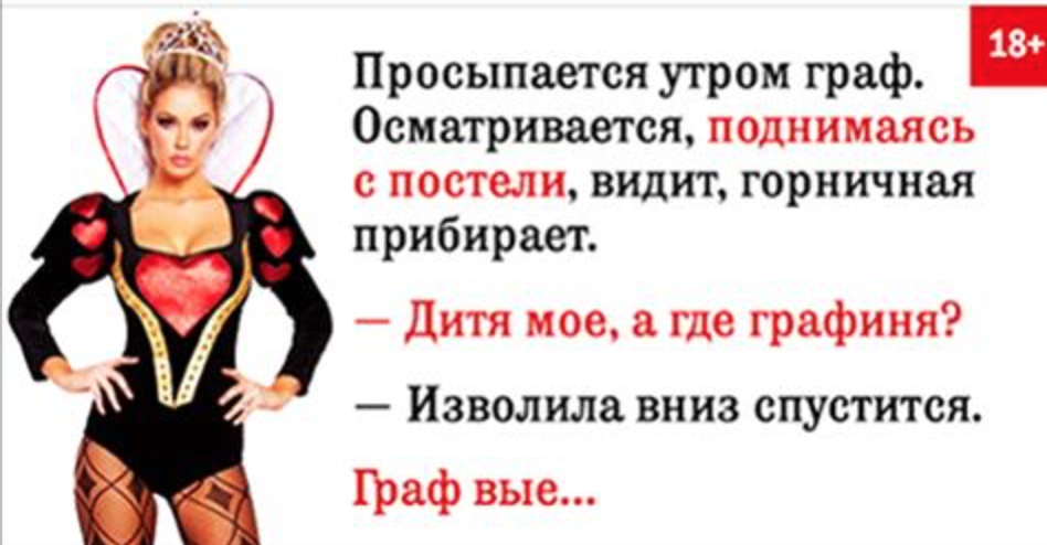 Граф выеб@л горничную. Спускается вниз, на кухне спрашивает кухарку: