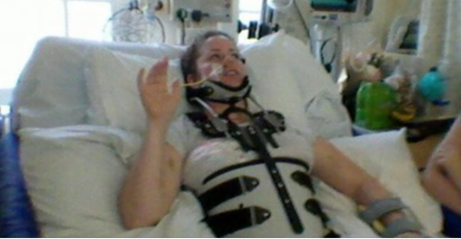 В сентябре 2012 года 26-летняя англичанка Джемма Холмс попала в серьезную аварию. На своем мопеде она на большой скорости врезалась в машину. От удара девушку подбросила вверх, после чего она ударилась об фонарный столб.