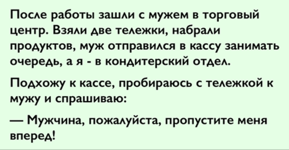 — Мужчина, пожалуйста, пропустите меня вперед!