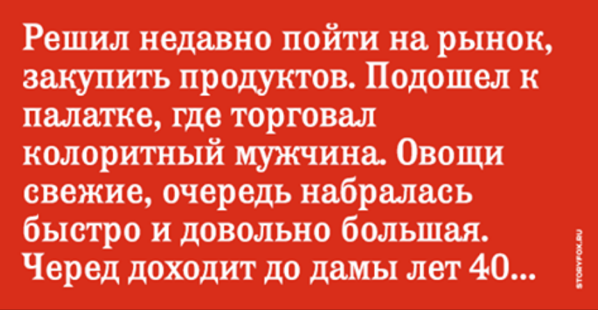 Дамочка расплатилась и убежала вся красная, под плохо сдерживаемый смех очереди. Грузин от перенапряжения вытер пот со лба и добавил:
