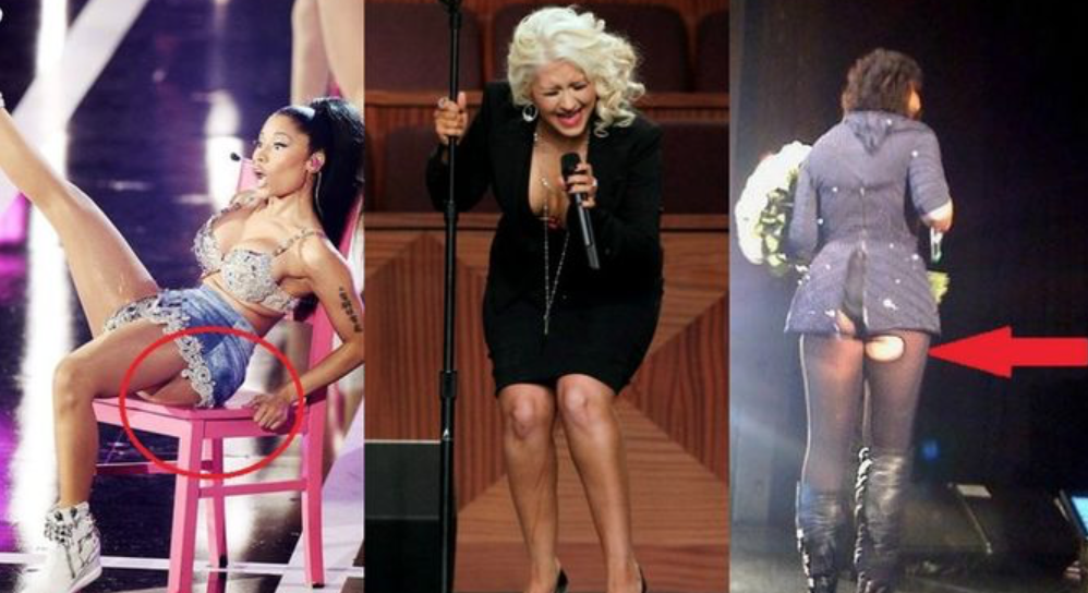 Как-то раз пышные формы сыграли злую шутку и с Бритни Спирс, постоянно сражающейся с лишним весом. Так во время концерта Бритни слегка не рассчитала возможности своего боди. В итоге костюм певицы разошелся в районе молнии. Исправить ситуацию попытался танцор, но дело было безнадежно.