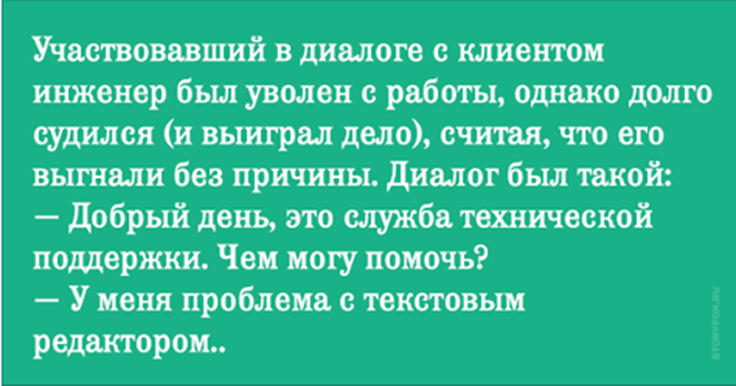 Участвовавший в диалоге с клиентом инженер был уволен с работы, однако долго судился (и выиграл дело), считая, что его выгнали без причины