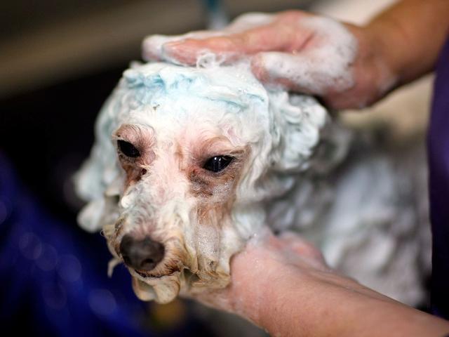 Собака со счастливым лицом получает SPA процедуры В мире Чудес 11 лет назад Только посмотрите как это собака с закрытыми глазами получает удовольствие от купания.