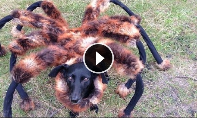 Собаку нарядили в костюм гигантского паука и отправили погулять