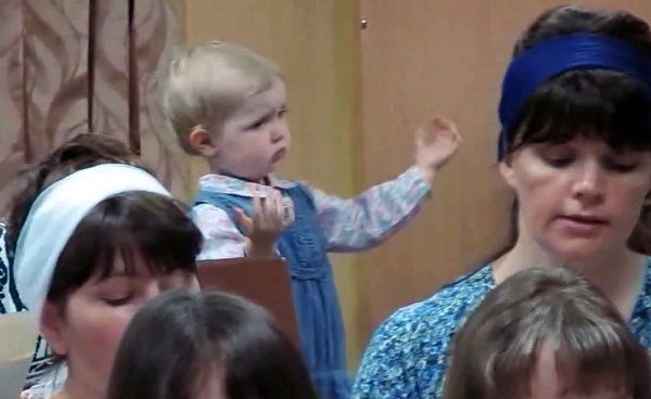 Маленькая девочка дирижирует хором