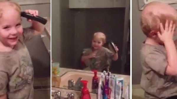 Маленький Эммет Перрин побрил себе голову электробритвой, а его мать спокойно снимала все...