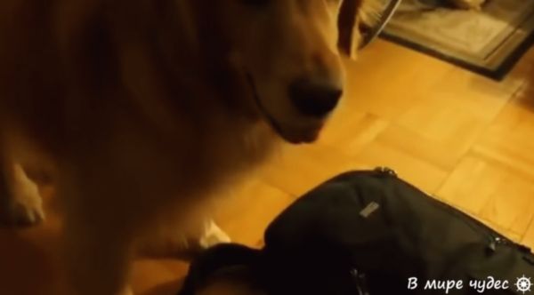 Хозяин возвращается из поездки, смешной пес встречает его у двери. Не сразу поймешь,...