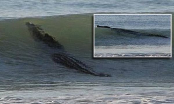 Затаившийся на мелководье морской крокодил, длина которого, по мнению специалистов, составляет порядка четырех...