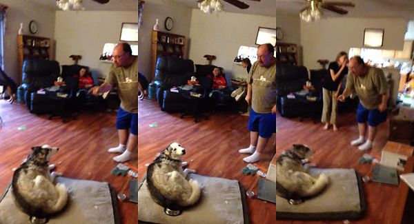 Этот песик не очень любит, когда хозяин вытворяет это. Малыш хочет играть, а...