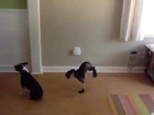 Только посмотрите, как этто милый и очаровательный бостон-терьер по кличке Гизмо шагает на...