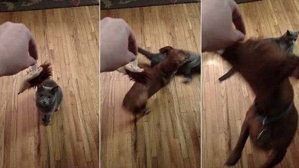КурьезПес увидел кота, который играл с хозяйкой. Но зависть взяла верх, и пес...