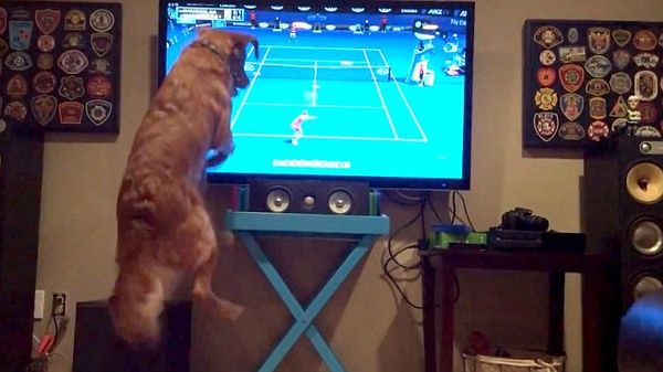 Пес очень эмоционально следил за событиями в полуфинальном поединке, и буквально не мог...
