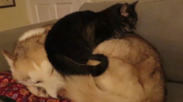 Вечные войны между кошками и собаками продолжаются ежесекундно. Но так бывает, что иногда...