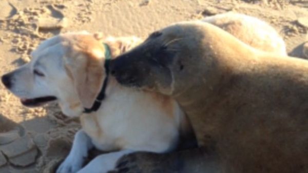 Невероятная и умилительная сцена была запечатлена на одном из пляжей Франции. Тюлень видимо...