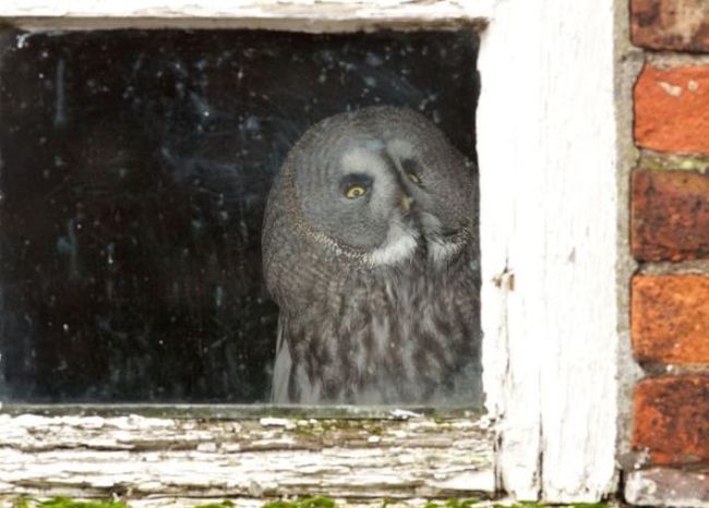 Сова села на подоконник, но с внутренней стороны дома ее заметил кот и...