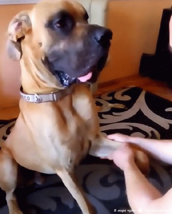 Смешной и веселый ролик, в котором здоровенный пес «мило» болтает с тенью на...