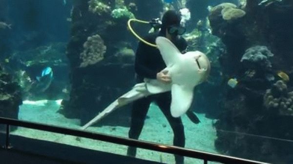 Этот веселый и забавный случай произошел с дайвером, когда он протирал аквариум. К...