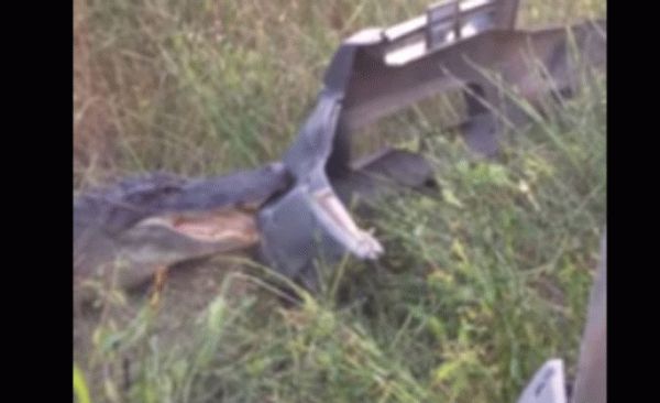 Мужчина обнаруживает в траве аллигатора и пытается спугнуть его при помощи своего внедорожника....