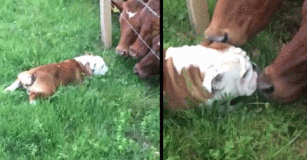 Смешной и веселый ролик, в котором бульдожек знакомится с коровками…