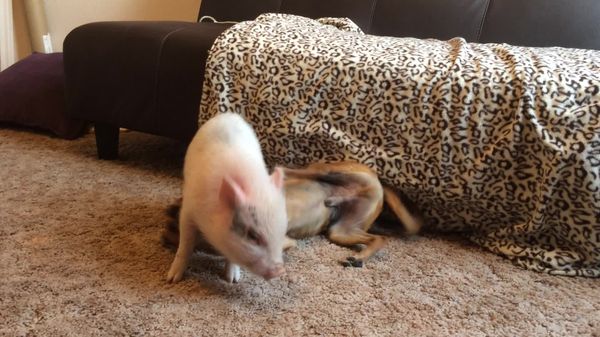 В этом позитивном ролики вы уведите милую битву, которую устроили чихуахуа и свинья....