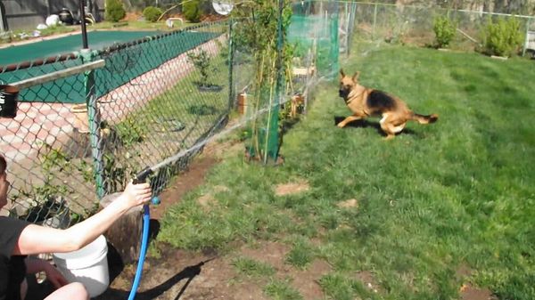 Смешной и веселый ролик, в котором немецкая овчарка наслаждается игрой со шлангом…