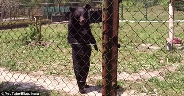 Этот забавный мишка умеет ходить как человек. Даже кажется, что это мужчина, переодетый...