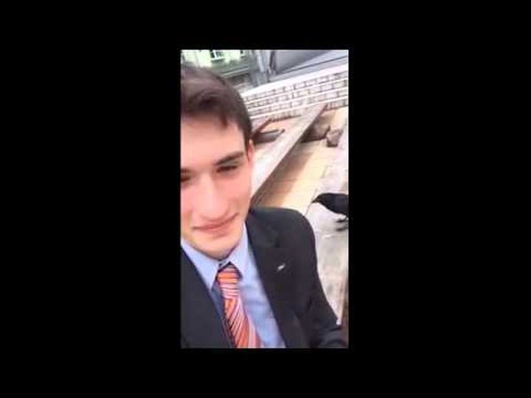 Смешной и позитивный ролик, в котором ворона пытается подобраться поближе к парню не...