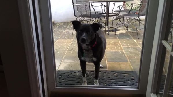 Перед этой смешной собакой стоит сложное задание, пройти через прозрачную дверь. Смешной ролик...